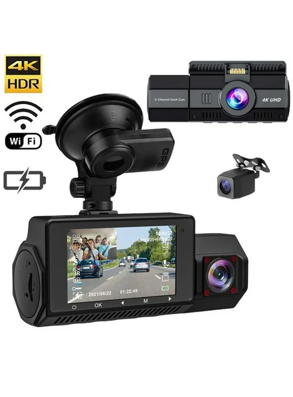 DGOO HDR In-vehicle Camera 4K Three-record Driving Recorder WiFi Infrared Night Vision GPS Track Three-lens Reversing Image Car Recorder