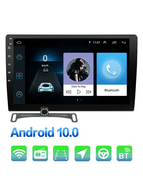 Universal Car Stereo Double Din 2+32G MP5 Player 10.1" HD Touch Screen Android CarPlay Auto Radio Bluetooth 5.0 GPS Navi WiFi FM Mirror Link with Reverse Camera