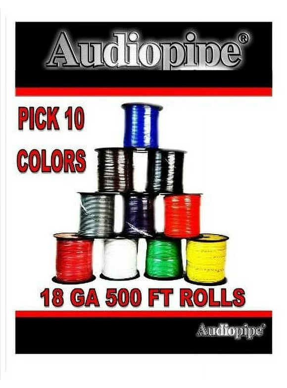 18 Gauge 500 Feet Audiopipe Primary Power Wire Remote Car Audio Home (10 Rolls)