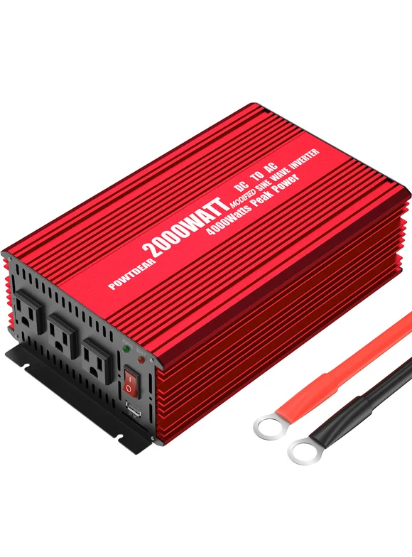 Power Inverter 2000 Watt, Power Converter 2000W DC 12V to 110V AC Car Inverter with 2.4A USB Ports 3 AC Outlets Red