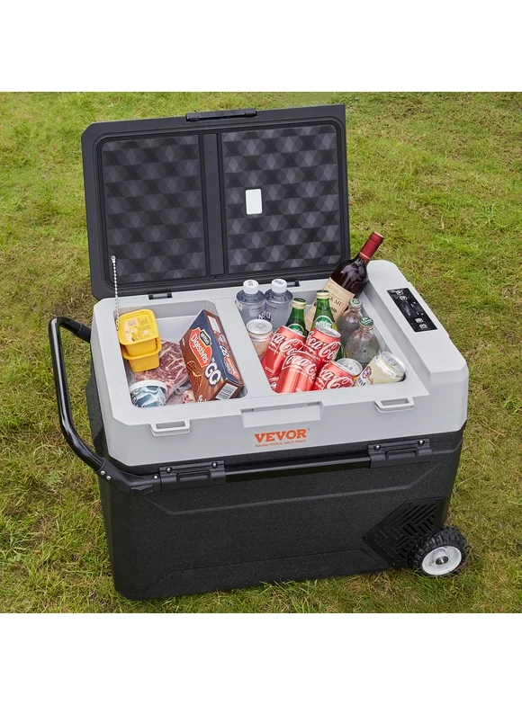 BENTISM Car Refrigerator 40Qt, 12v Portable Freezer with Dual Zone, 12/24V DC & 110-240V AC Electric Cooler with -4-50 Cooling Range, for Car Truck Vehicle RV Boat Outdoor & Home use