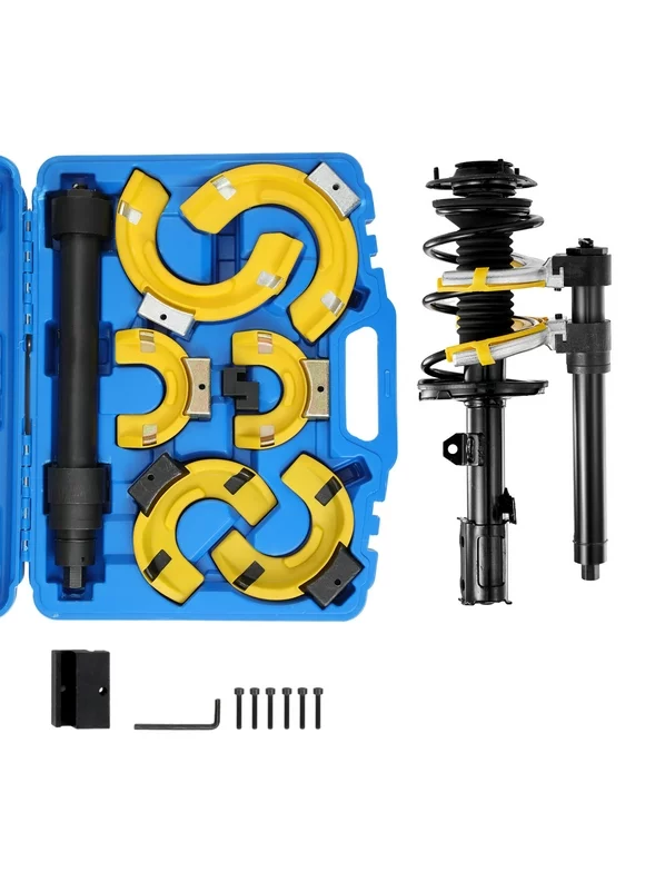 BENTISM Strut Spring Compressor Set, Macpherson Strut Spring Compressor Kit, Interchangeable Fork Strut Coil Extractor Remover Tool, with Yellow Protective Sleeve and Carrying Case