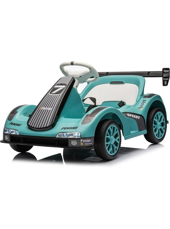 UPYOOE Electric Go Kart for Kids,12V Battery Powered Drift Kart,4 Wheeler Pedal Car for Boys Girls, Dual Drive Ride on Car Toys for Toddlers Kids 4-8 w Remote Control, Safety Belt (Cyan)
