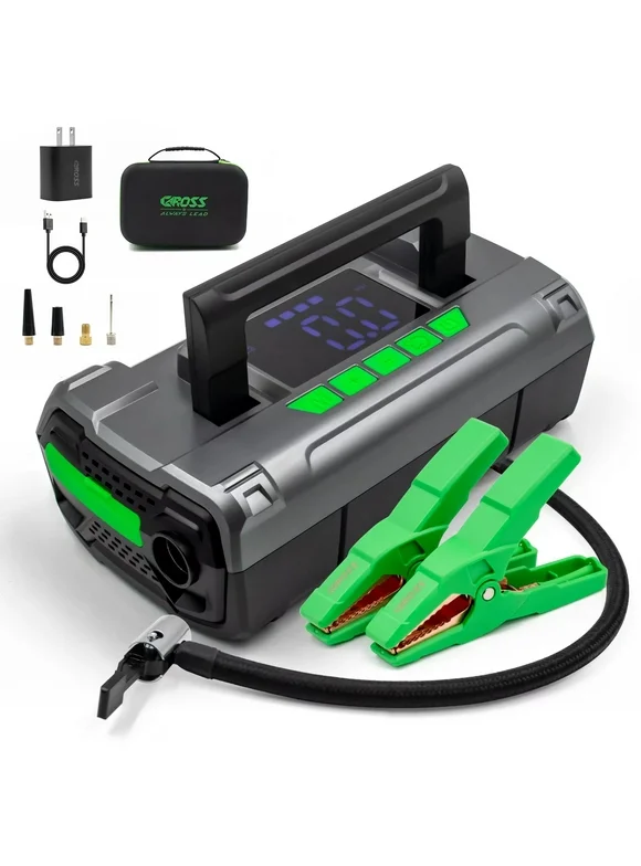 CAROSS T14 Jump Starter with 150 PSI Air Compressor, 2000A Peak 20000mAh (up to 8L Gas or 6L Diesel Engines) Patented Green Jumper Cable, USB QC 3.0 Quick Charge, 3.6'' Big Screen, 3 Light modes
