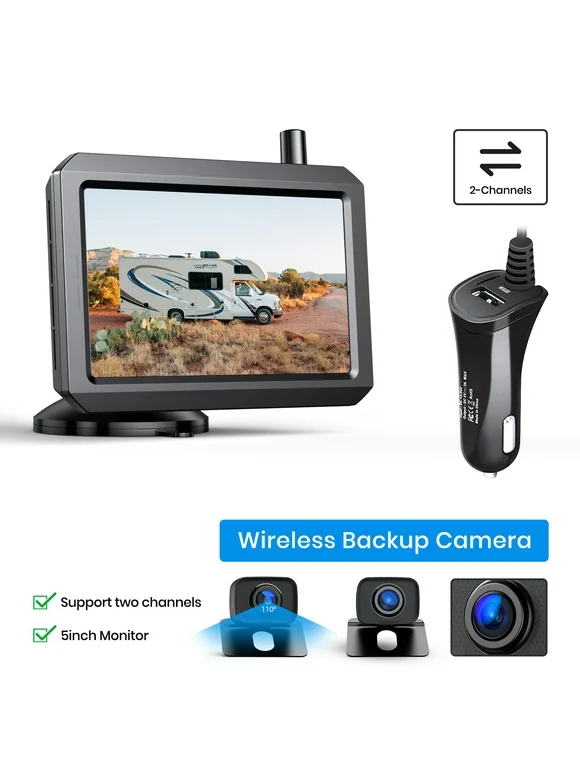 Digital Wireless Backup Camera System With 2 Cameras, IP68 Waterproof Wireless Rear View Camera 2 Channels Reversing System for Car