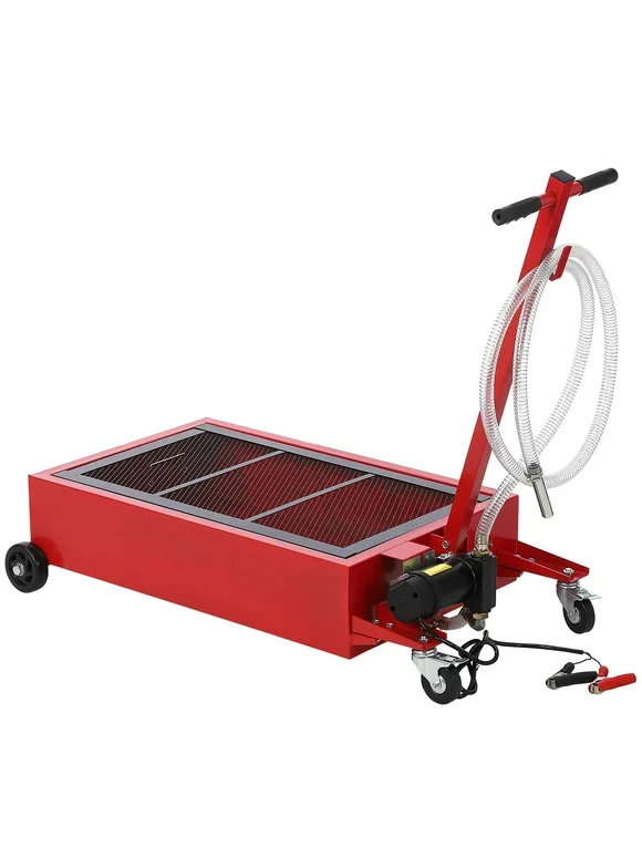 Telyswee 20 Gallon Oil Drain Pan Oil Drain Tank with 12V Electric Pump, 76L Low Profile Oil Drain Pan, Oil Change Pan with T Foldable Hand and Wheels, 8FT Hose Oil Drain Cart for Car, SUV, Trucks