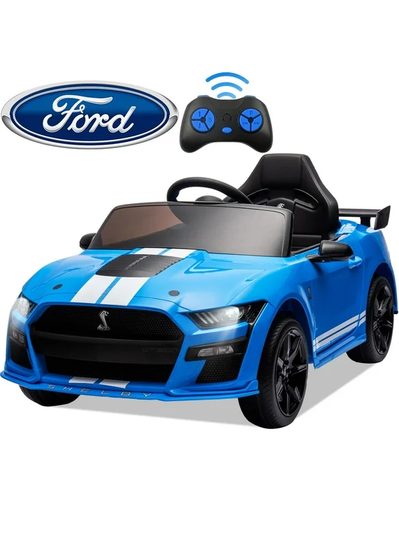 Ride on Toy Cars for Kids, 12V Ford Mustang Shelby Powered Ride on Truck Car with Remote Control, Electric Vehicle Car for kids Girl Boy 3-6 w/Music, Bluetooth, LED Lights, 3 Speeds, 4 Wheelers, Blue