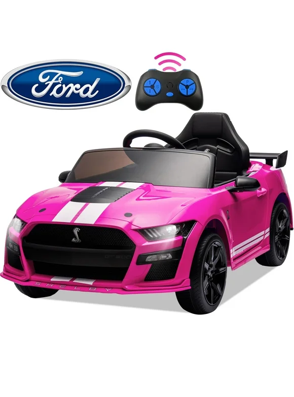 Ride on Toy Cars for Kids, 12V Ford Mustang Shelby Powered Ride on Truck Car with Remote Control, Electric Vehicle Car for kids Girl Boy 3-6 w/Music, Bluetooth, LED Lights, 3 Speeds, 4 Wheelers, Pink