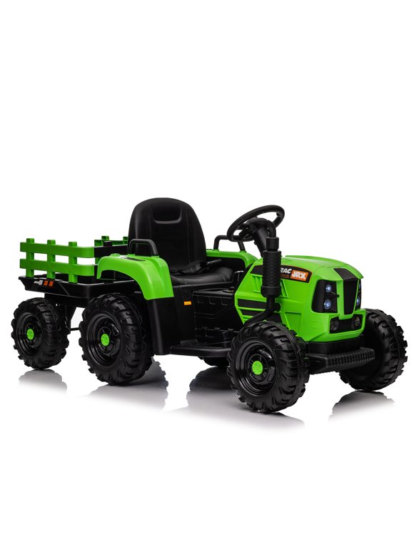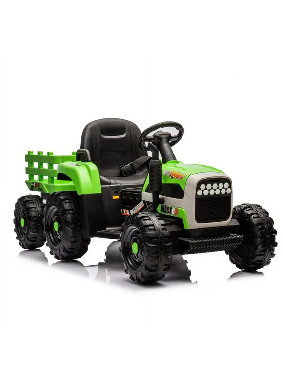 Ride on Tractor with Trailer, 12V Battery Powered Electric Tractor Toy with Remote Control, Electric Car for Kids, with Three Speed Adjustable, USB, Mp3, Bluetooth and LED Light, Green