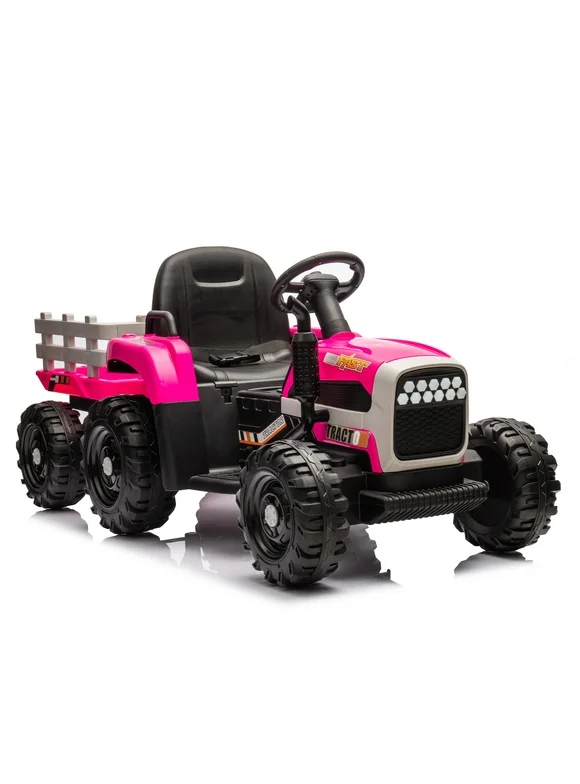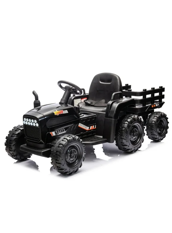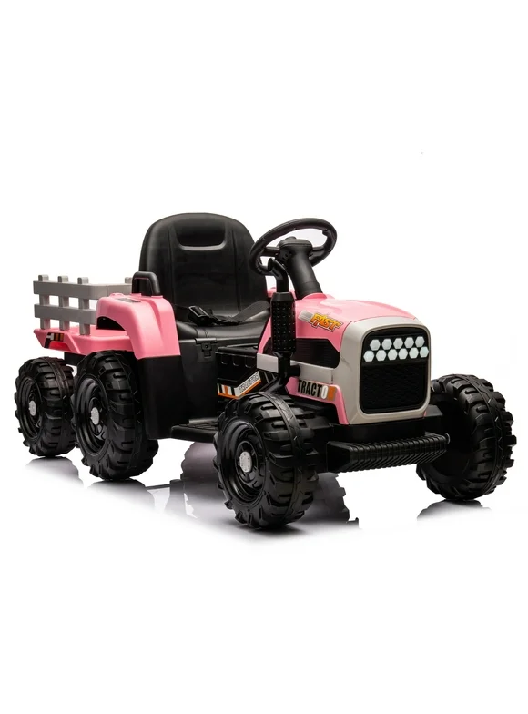 Ride on Tractor with Trailer,24V Battery Powered Electric Tractor Toy, 200w*2motor 1.86-4.97MPH/Remote Control,electric car for kids,Three speed adjustable,USB,MP3 ,Bluetooth,LED light, safety belt.
