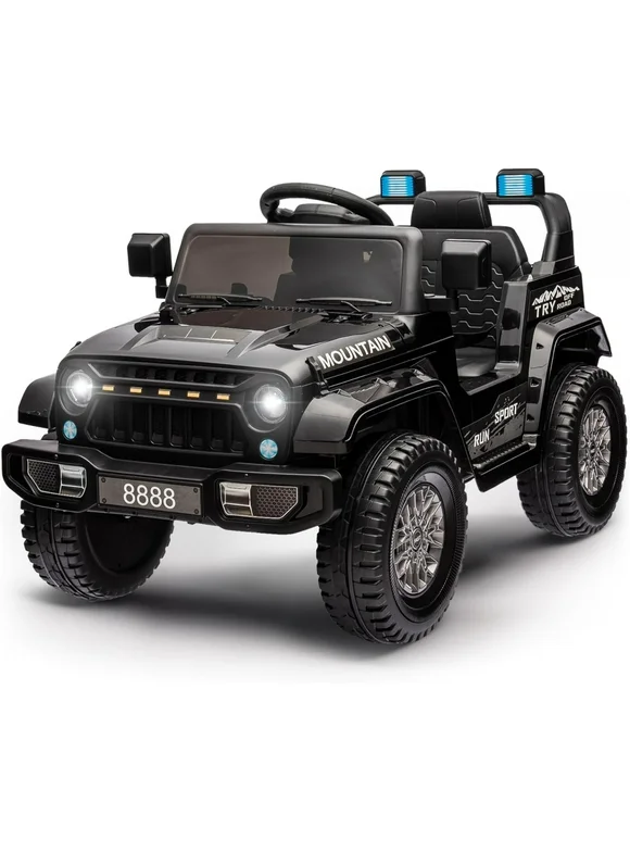 TEOAYEAH 2X35W Ride on Truck Car, 12V Electric Vehicle Toy w/Remote Control, Low Battery Voice Prompt, Wireless Music, Black