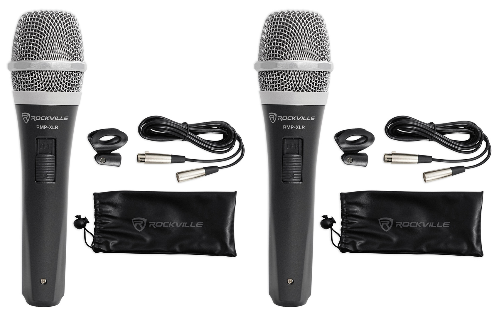 2 Rockville RMP-XLR Dynamic Cardioid Pro Microphones + 10' XLR Cables+2 Clips
