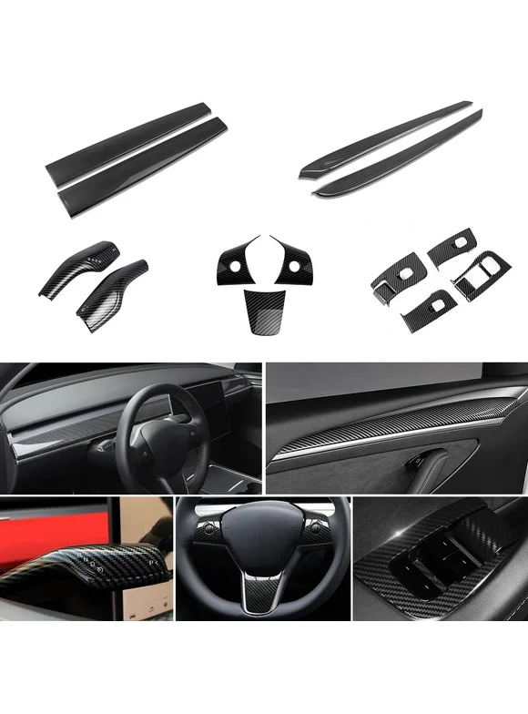 Xotic Tech Car Interior Center Console Dashboard+ Door Strip+ Steering Wheel+ Paddle Shifter+Window Switch Cover Trim Combo Pkg, Carbon Fiber Pattern, Compatible with Tesla Model 3 Model Y 2021-up