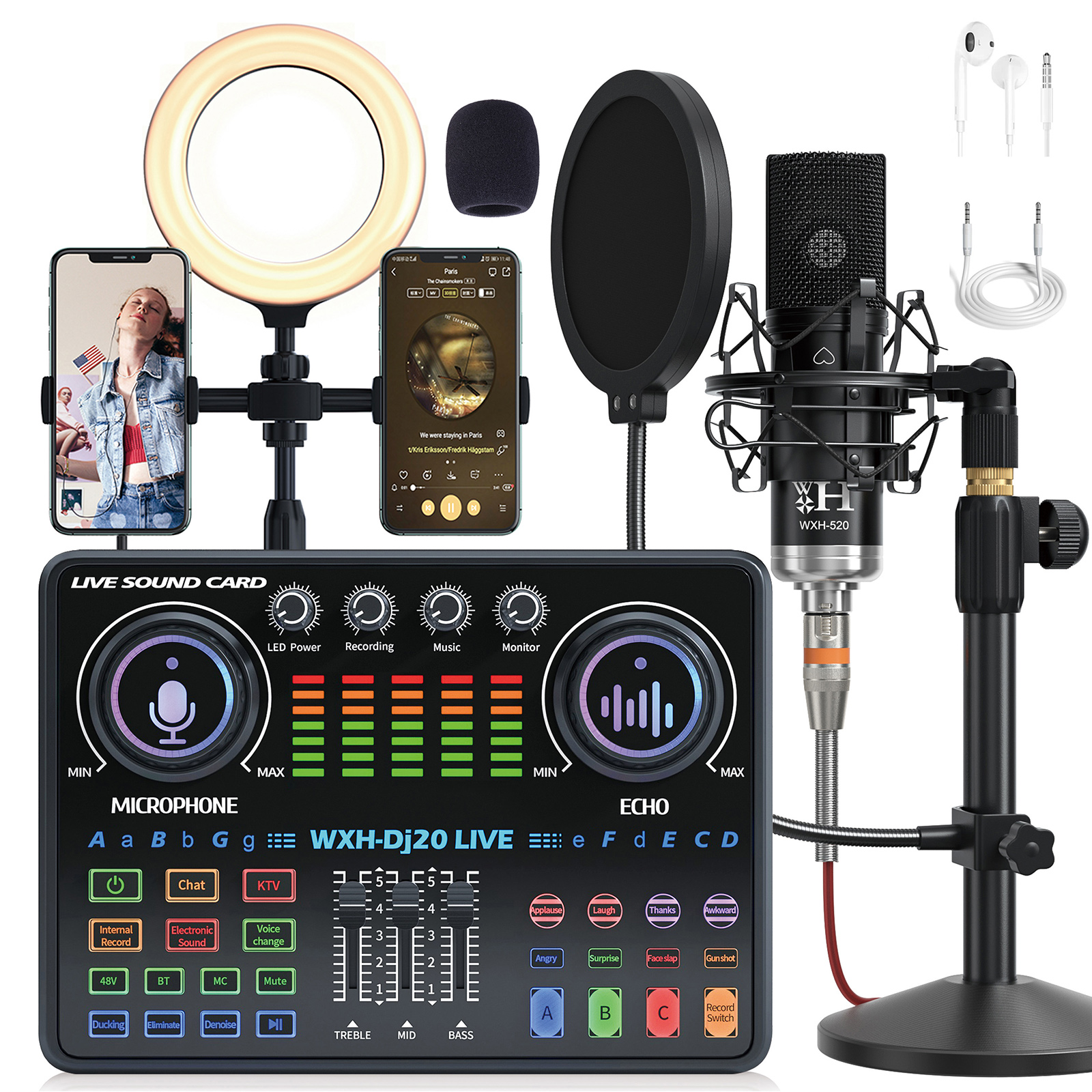 Podcast Equipment Bundle, ALSO GO 48V XLR Large Diaphragm Condenser Microphone with Live Sound Card, Condenser Microphone Bundle for Studio Recording & Broadcasting
