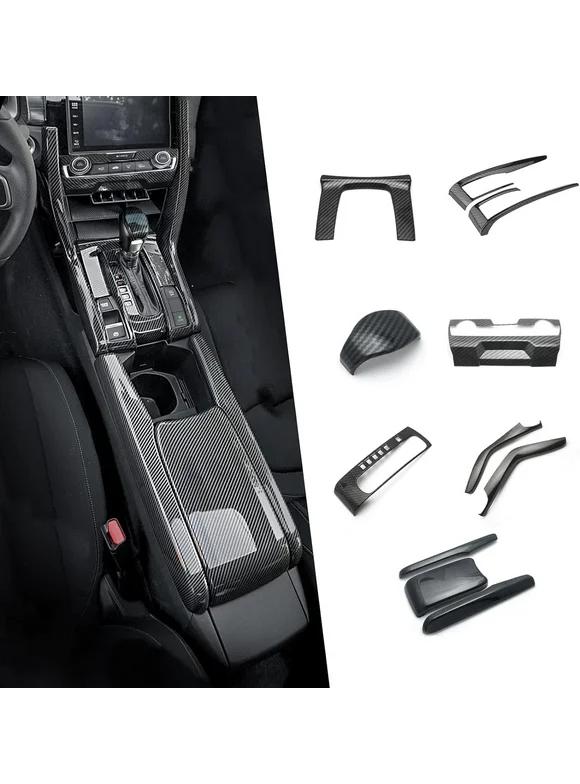 Xotic Tech Interior Center Console Panel Gear Upper Panel Console Side Armrest Box Gear Shift Button Frame w/ Lever Cover Trim Combo Kit , Carbon Fiber Pattern , Compatible with Honda Civic 2016-2021
