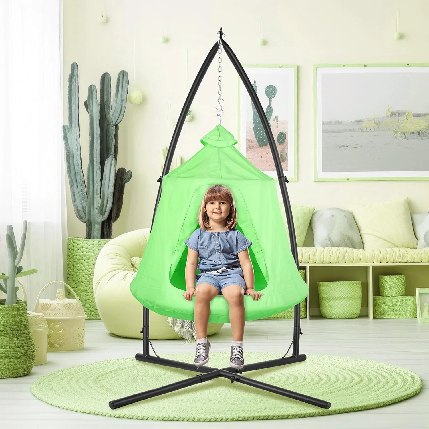 Pirecart Hammock C-Stand with Hanging Tree Tent for Kids Adults with LED Decoration Lights