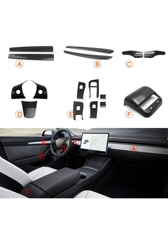 Xotic Tech Car Interior Center Console Dashboard+ Door Strip+ Steering Wheel+ Paddle Shifter+Window Switch+Rear Air Vent Cover Trim, Carbon Fiber Pattern, Compatible with Tesla Model 3 Model Y 2021+