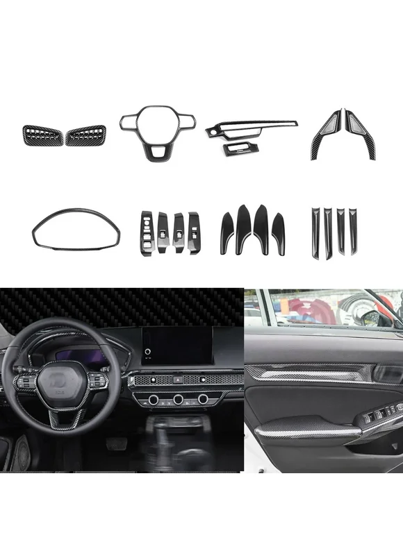 Xotic Tech Interior Dashboard Instrument Steering Wheel Frame AC Vent Outlet Side Door Window Switch Panel Cover Trim Combo Kit, Carbon Fiber Pattern, Compatible with Honda Civic 11th Gen 2022-up