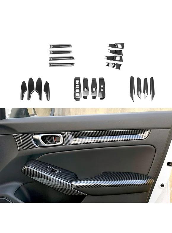 Xotic Tech Interior Door Side Armrest Panel Handle Bowl Window Switch Frame Cover Trim Combo Kit, Carbon Fiber Pattern, Compatible with Honda Civic 11th Gen 2022-up