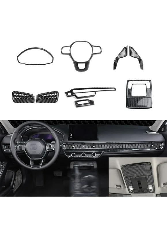 Xotic Tech Interior Dashboard Instrument Steering Wheel Frame AC Vent Outlet Pillar Speaker Reading Light Panel Cover Trim Combo Kit, Carbon Fiber Pattern, Compatible with Honda Civic 11th Gen 2022-up