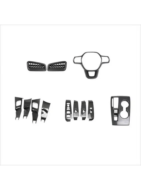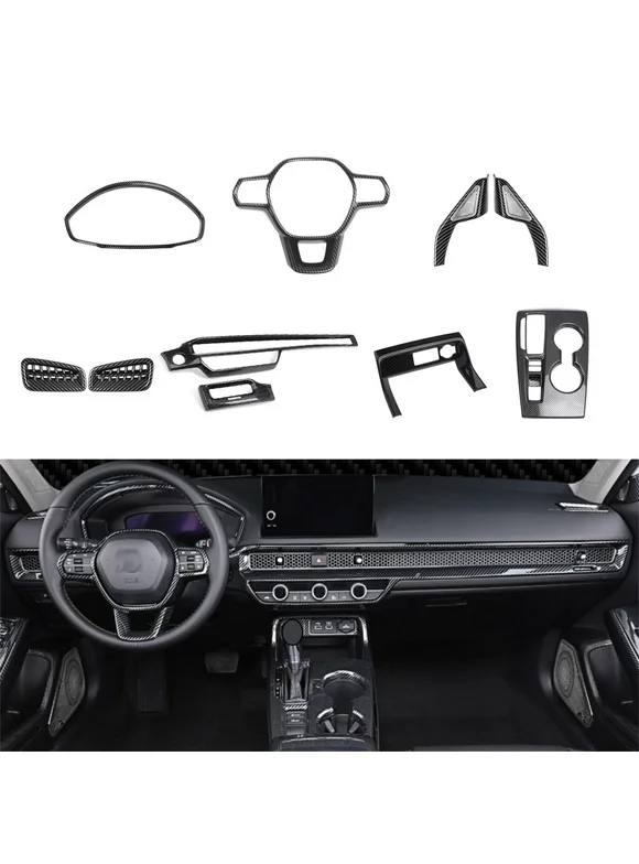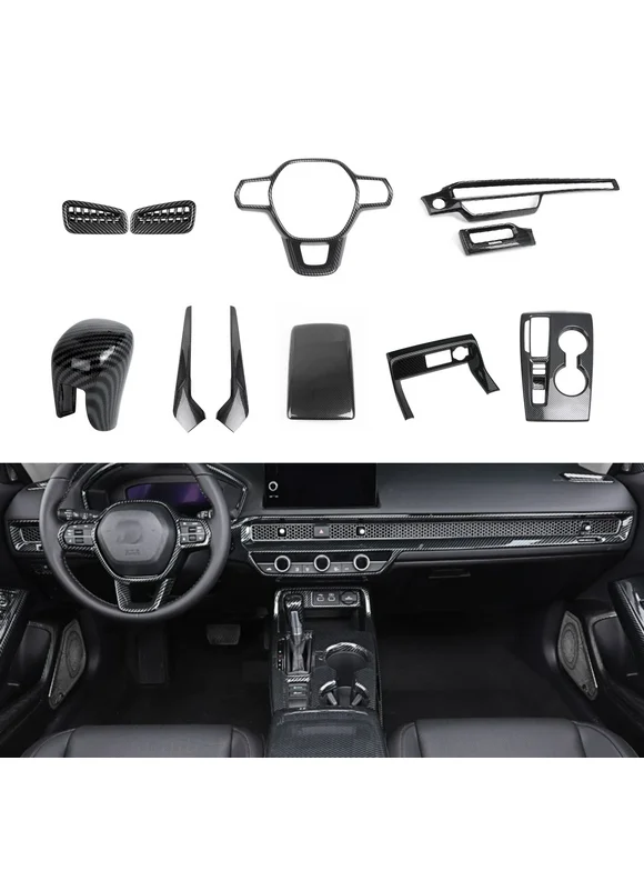 Xotic Tech Interior Steering Wheel Frame Side AC Vent Outlet Gear Shift Window Switch Panel Door Handle Bowl Cover Trim Combo Kit, Carbon Fiber Pattern, Compatible with Honda Civic 11th Gen 2022-up