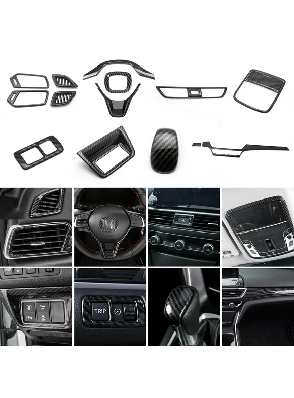 Xotic Tech Interior Steering Wheel Dash/Center AC Vent Gear Shift Knob Reading Light Frame Cover Trim Combo Kit , Carbon Fiber Pattern , Compatible with Honda Accord 10th Gen 2018-2022