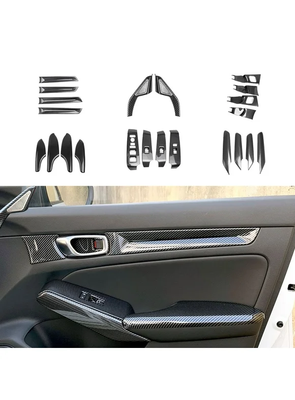 Xotic Tech Interior Door Side Armrest Panel Handle Bowl Window Switch Frame Pillar Speaker Cover Trim Combo Kit, Carbon Fiber Pattern, Compatible with Honda Civic 11th Gen 2022-up