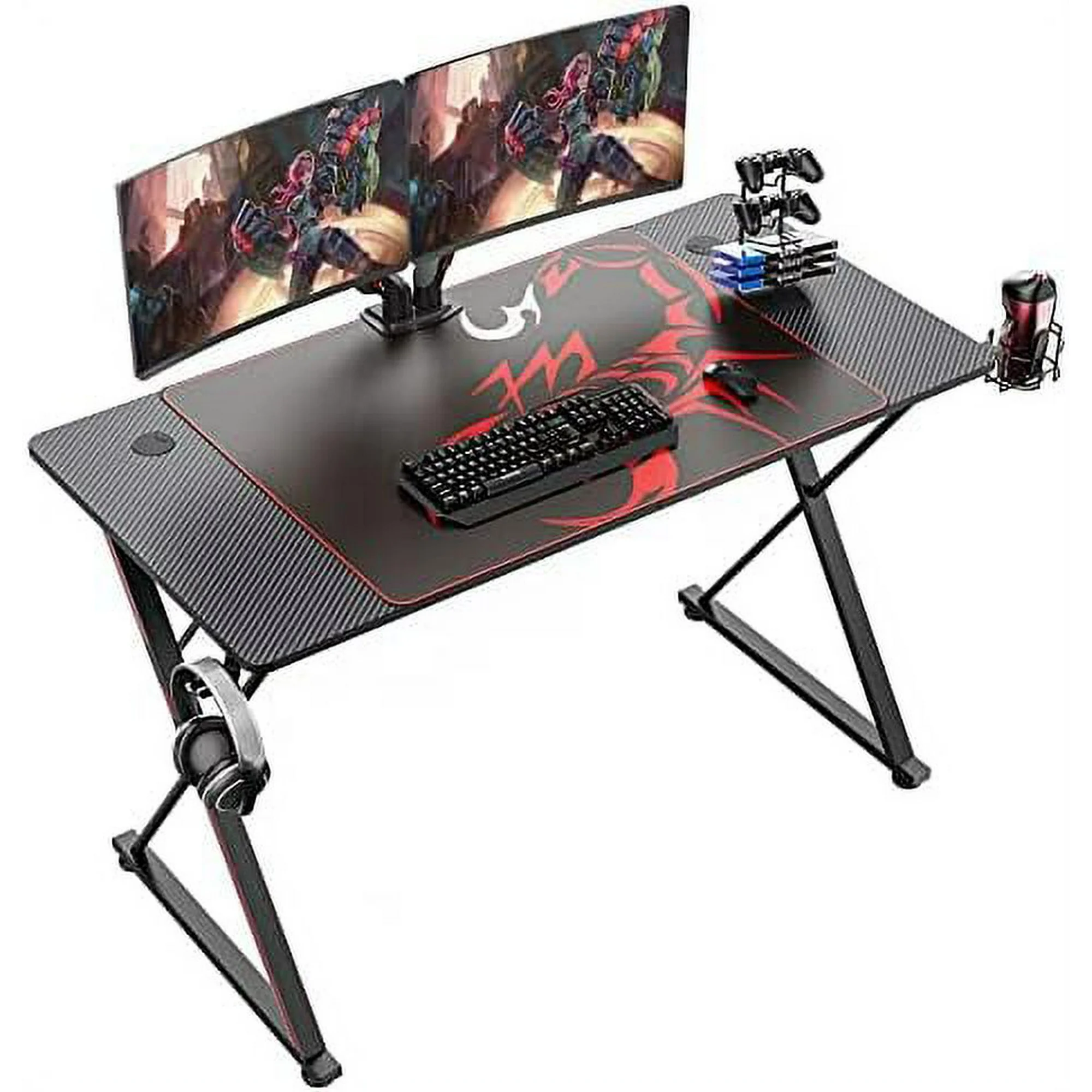 YPDCHB ERGONOMIC Gaming Desk 47 Inch PC Gaming Table X Shaped Gaming Computer Desk with Mouse Pad Carbon Fiber Home Office Desk with Cup Holder & Headphone Hook & Controller Sta