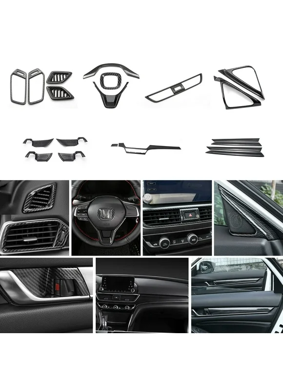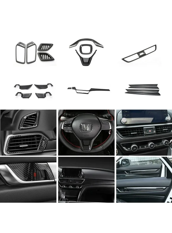 Xotic Tech Steering Wheel Dashboard/Center AC Vent Door Panel Handle Bowl Cover Trim Combo Kit , Carbon Fiber Pattern , Compatible with Honda Accord 10th Gen 2018-2022