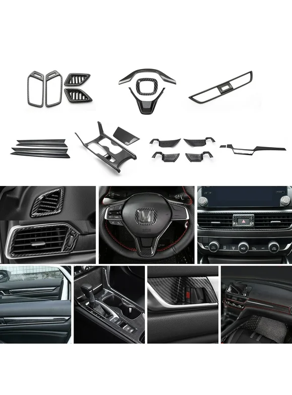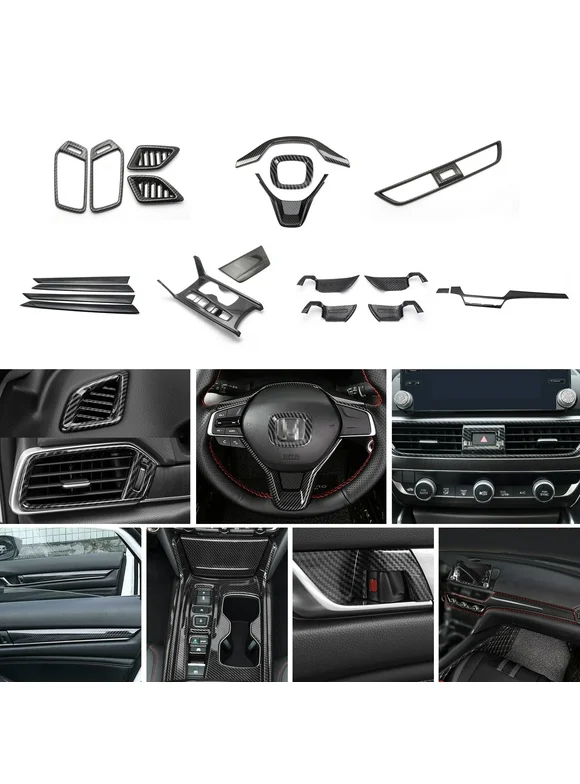 Xotic Tech Steering Wheel Dashboard/Center AC Vent Door Panel Handle Bowl Gear Shift Panel Cover Trim Combo Kit , Carbon Fiber Pattern , Compatible with Honda Accord 10th Gen 2018-2022(Gas Version)