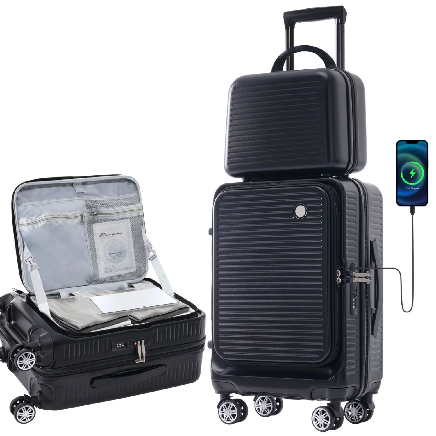 Convenient Stylish and Lightweight 20 Inch Front Open Carry-on Luggage with Front Pocket USB Port and Portable Carrying Case - The Perfect Travel Companion for Effortless and Easy Tra