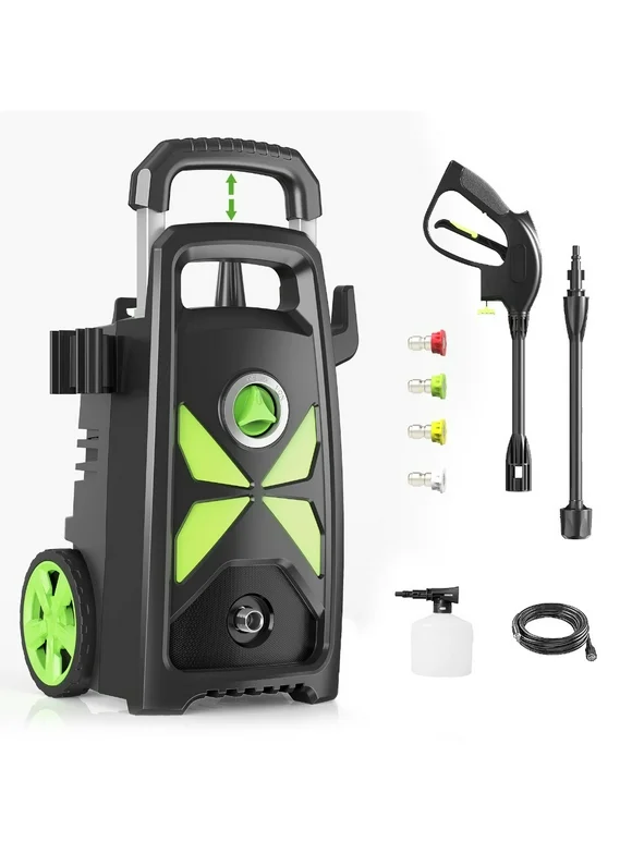 3400 PSI Electric Pressure Washer High Power Washer with Adjustable Nozzle and Soap Bottle for Car Washing, Fence Cleaning, Driveway Cleaning, Patio Maintenance,Green