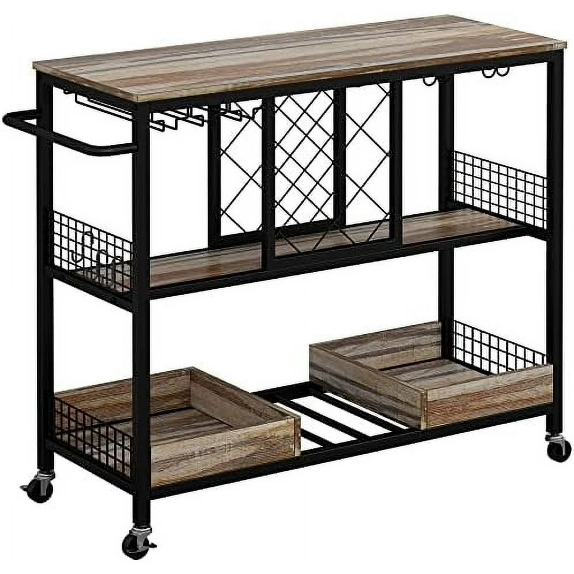 YPDCHB Cart Industrial Serving Cart on Wheels Kitchen Cart for The Home Wood and Metal Frame Vintage Brown