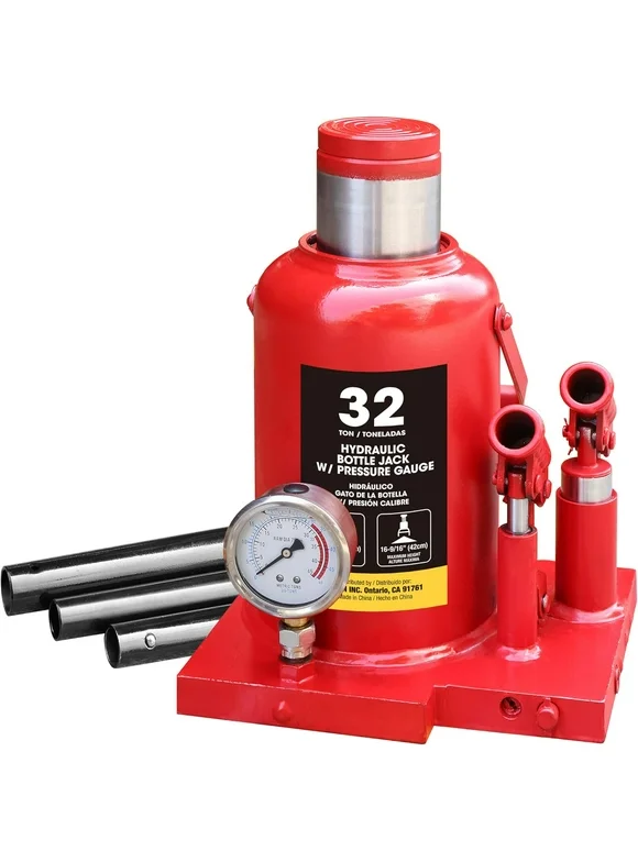 BIG RED 32 Ton Professional Double Piston Steel Car Bottle Jack with Gauge,Red,W931R
