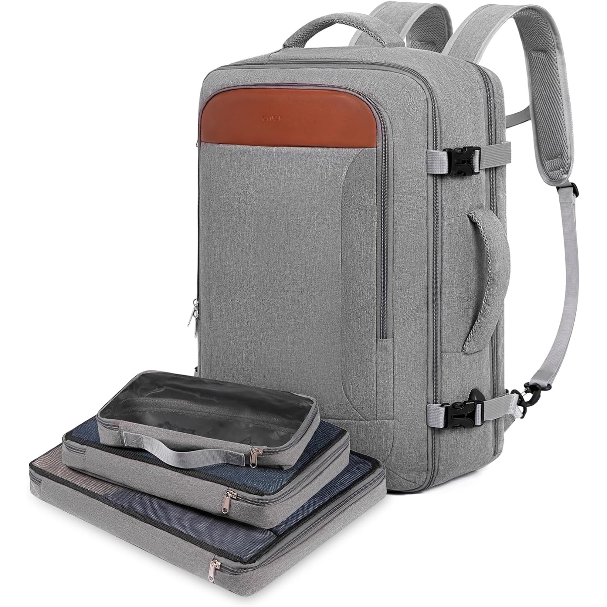 Travel Backpack For Women Men,Carry On Backpack Flight Approved With 3 Packing Cubes, Luggage Suitcase Hiking Backpack Water Resistant Rucksack Casual Daypack Traveling Essentials Grey