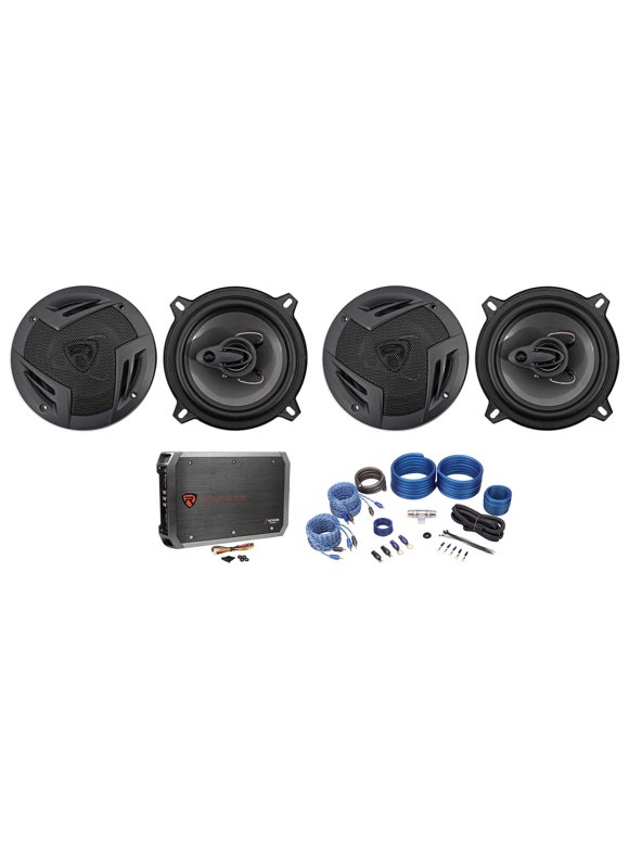 (4) Rockville RV5.3A 5.25" 1200w 3-Way Car Speakers+4-Channel Amplifier+Amp Kit
