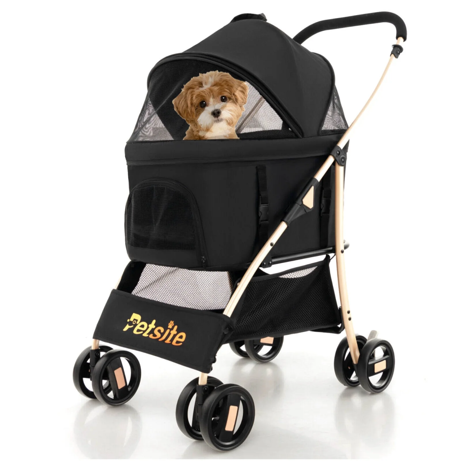 Amijoy 3-in-1 Pet Stroller, 4-Wheel Travel Pet Carrier, Portable Folding Dog Cat Stroller with Removable Car Seat Carrier