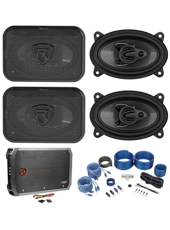 (4) Rockville RV46.3A 4x6" 1000w 3-Way Car Speakers+4-Channel Amplifier+Amp Kit