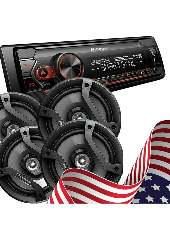 NEW Pioneer Package of 1-DIN Media Car Stereo Receiver & 4X 6.5" Speakers Bundle