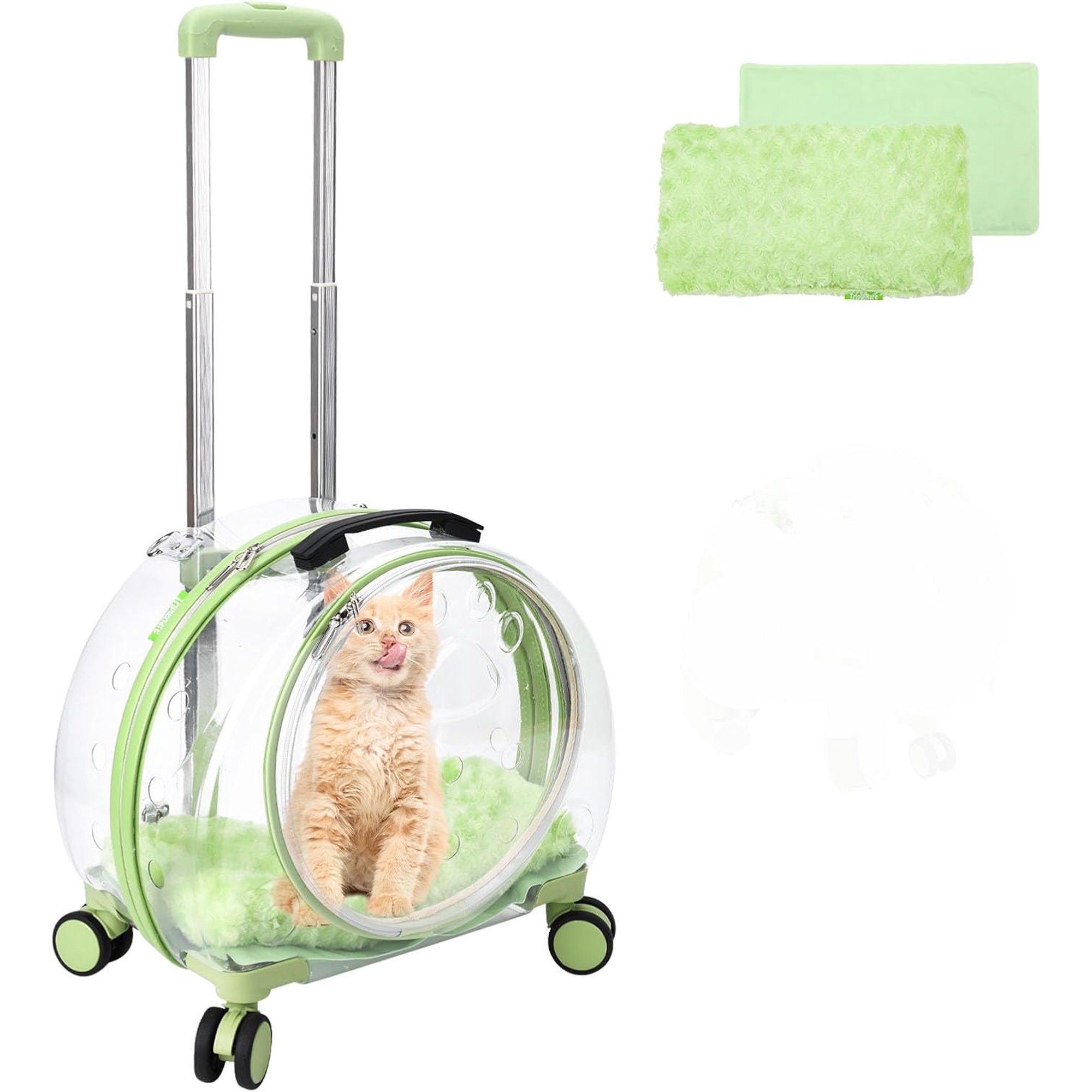 Transparent & Fully Breathable Pet Carrier Backpack with Trolley Wheels for Dogs, Cats, Parrots or Bunnies, Multiple Carrying Options, Perfect for Traveling/Taking a Walk (Green)