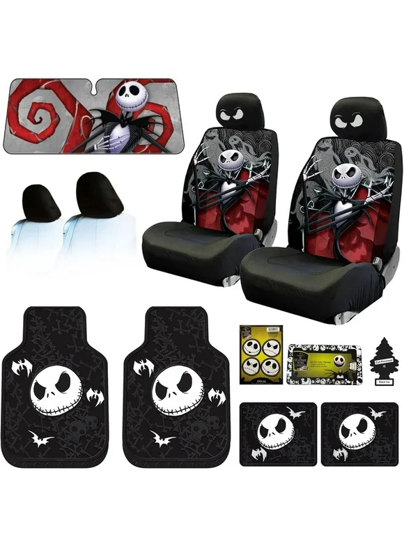 New Plasticolor Nightmare Before Christmas Jack Skellington Ghostly Car Truck SUV Seat Covers Sunshade Headrest Covers Heavy Duty Rubber Floor Mats Bundle Set