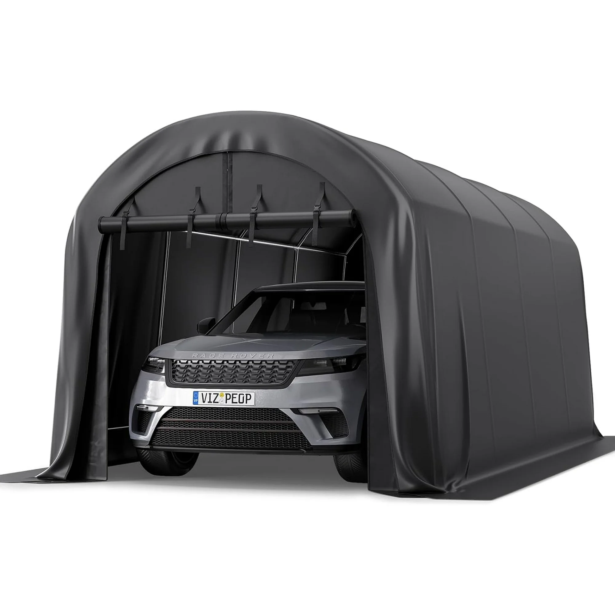 ELPOSUN 10x20 Portable Carport Heavy Duty Outdoor Garage Storage Shelter Round Style Canopy Shelterlogic Steel Metal Sunshade Waterproof Carports with Roll up Doors for Car, Truck, Boat and SUV