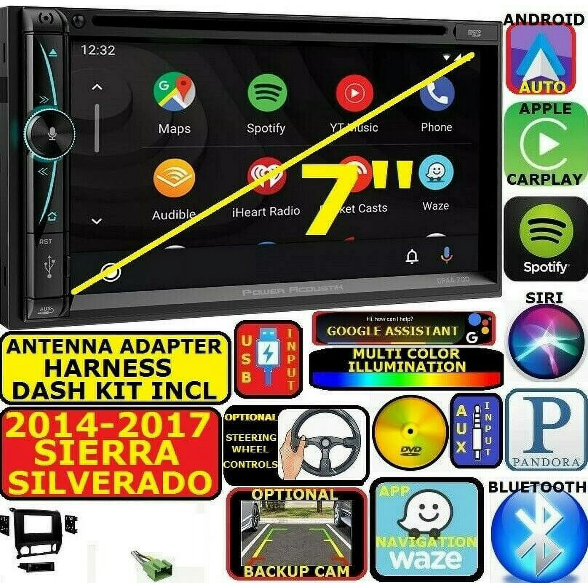 2014 & UP SILVERADO / SIERRA ANDROID AUTO APPLE CARPLAY NAVIGATION (works with IPHONE) USB/BLUETOOTH CAR RADIO STEREO PKG. INCL. VEHICLE INSTALLATION, DASH KIT, WIRE HARNESS, AND ANTENNA ADAPTER