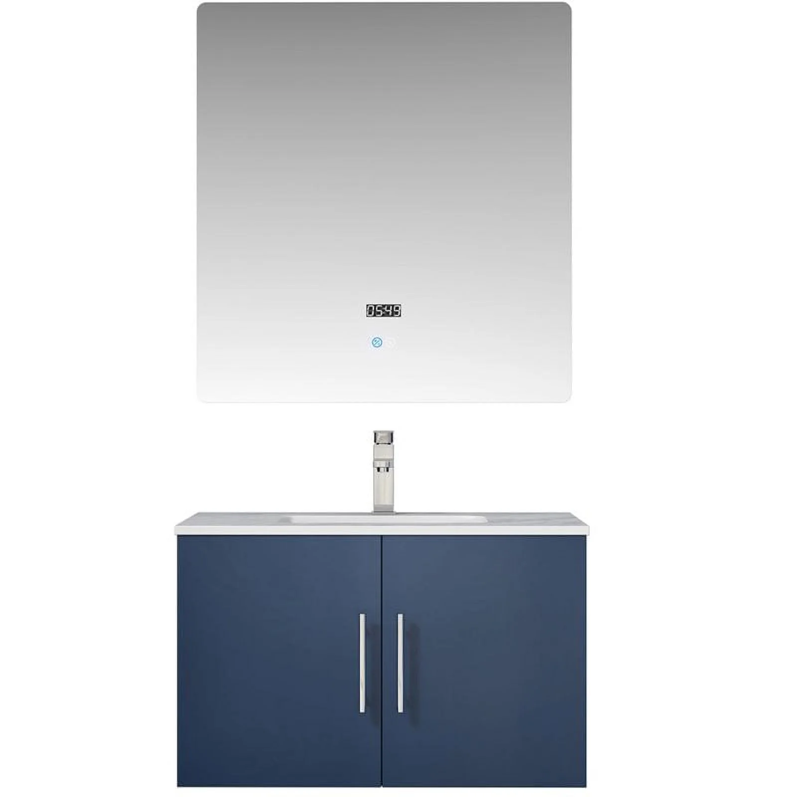 Lexora Home Geneva 30" Carrara Marble Top Single Vanity in Navy Blue