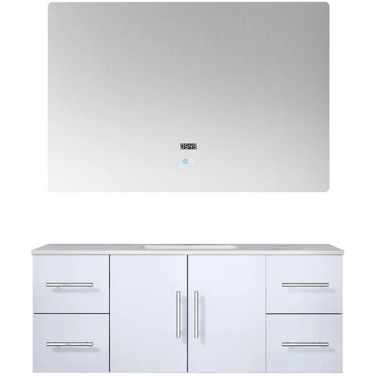 Lexora Home Geneva 48" Carrara Marble Top Single Vanity in Glossy White