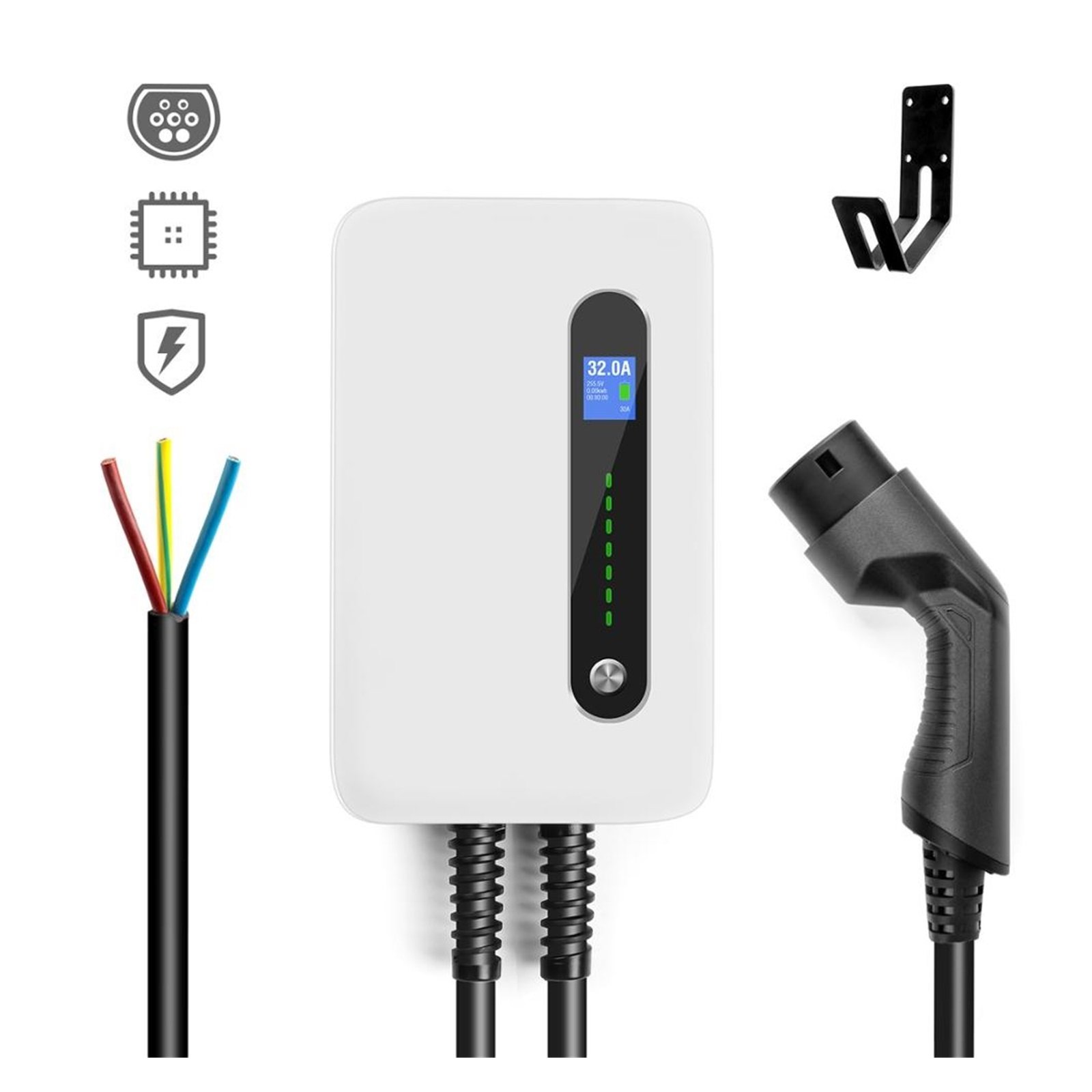 EV Charging Station Cable 32A Electric Vehicle Car Charger EVSE Wall box Wall Mount Type 2 Cable 62196-2 Level 2 240V 7.6KW