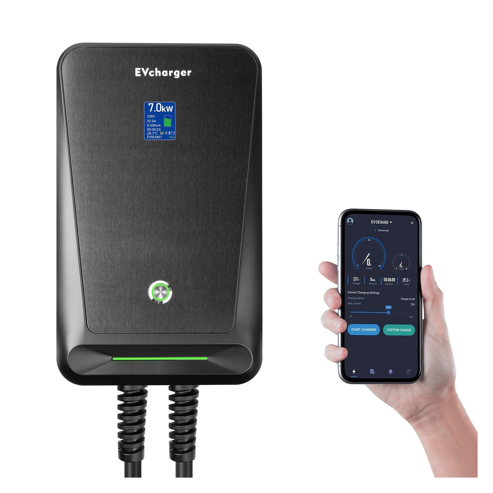 EV Charger With APP Control Electric Car Charger Wall Box 32A 7kW Wall-mounted EV Charging Station Type 1 Cable