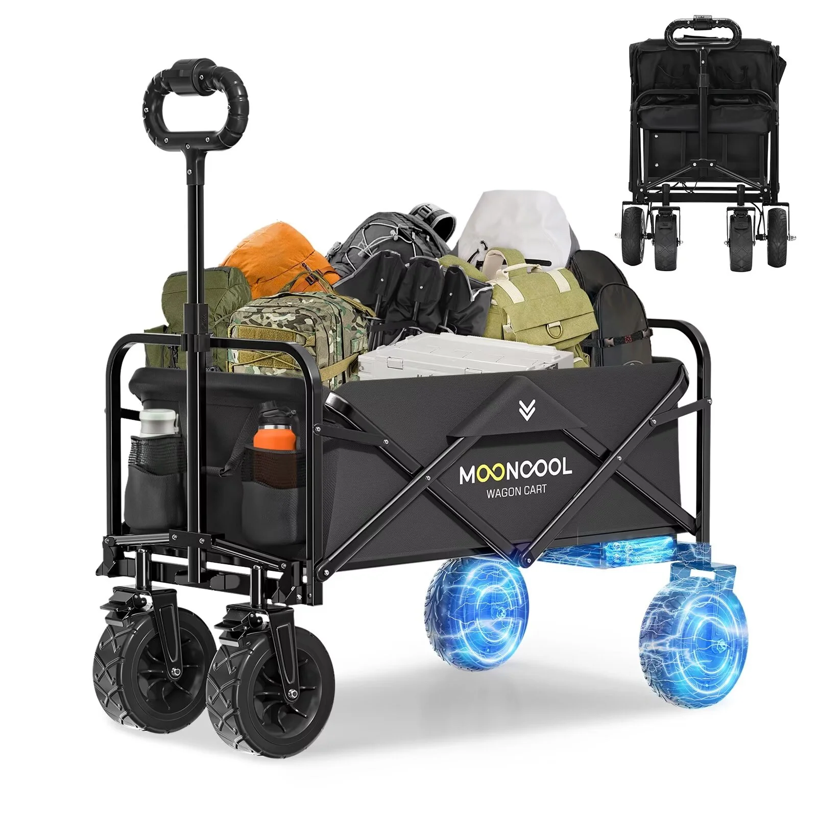 Lilypelle Electric Foldable Wagon Collapsible with 8" All-Terrain Wheel, Pure Electric Drive Wagon w/ 500W Motor for Camping, Garden, Shopping, Heavy Duty Beach Folding Utility Garden Carts