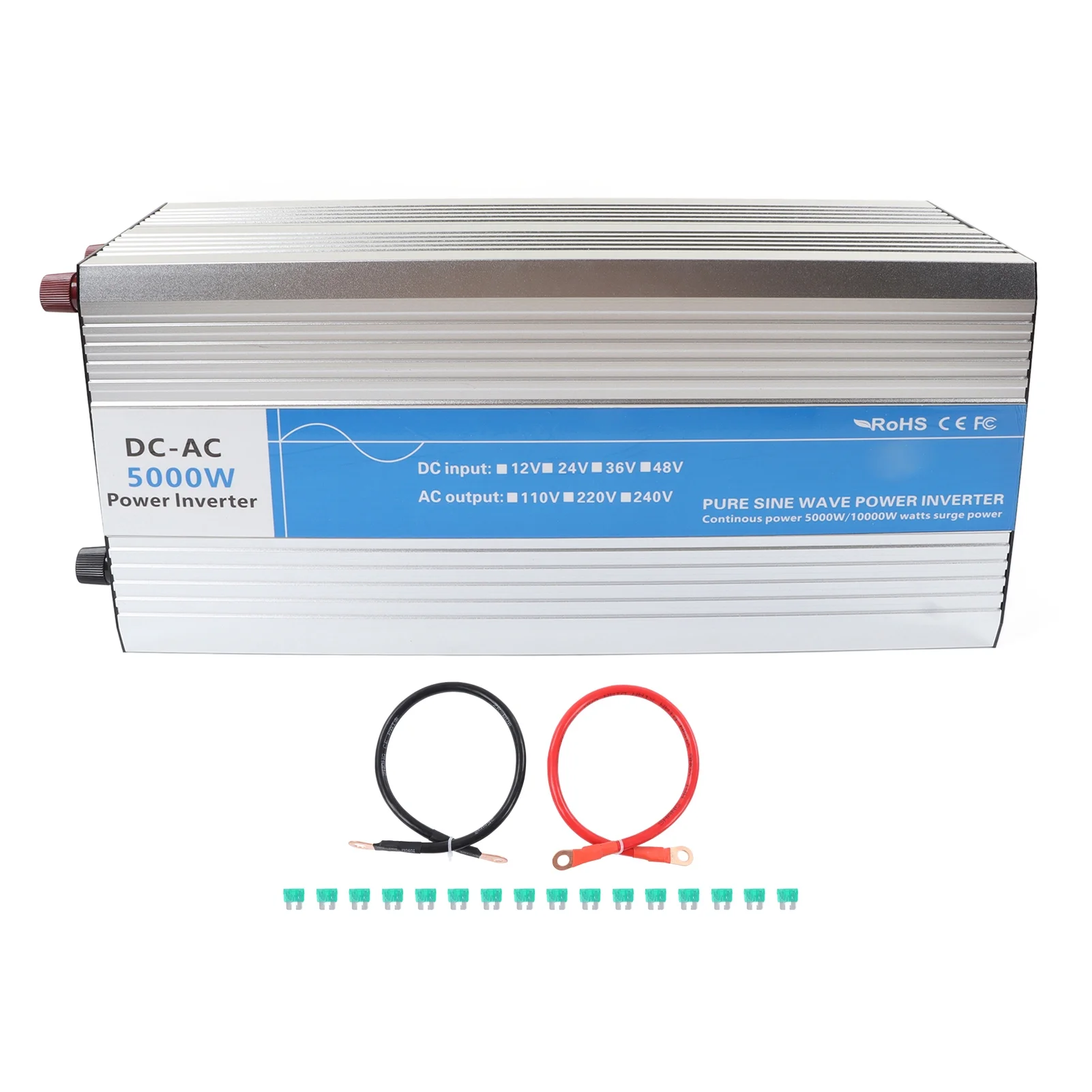 2024 5000W Pure Sine Wave Inverter 2 AC Outlets LED Digital Display Car Power Inverter 5V 2.1A USB 10KW Peaking AC220V Input DC48V