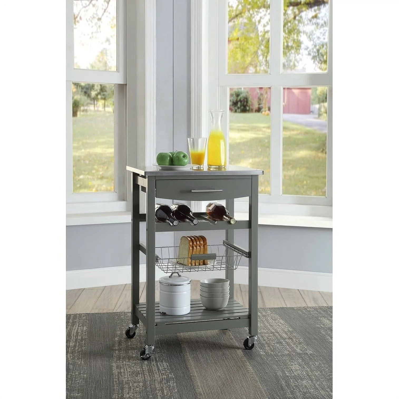 Linon Jake Compact Mobile Rolling Kitchen Cart Grey/Stainless Steel